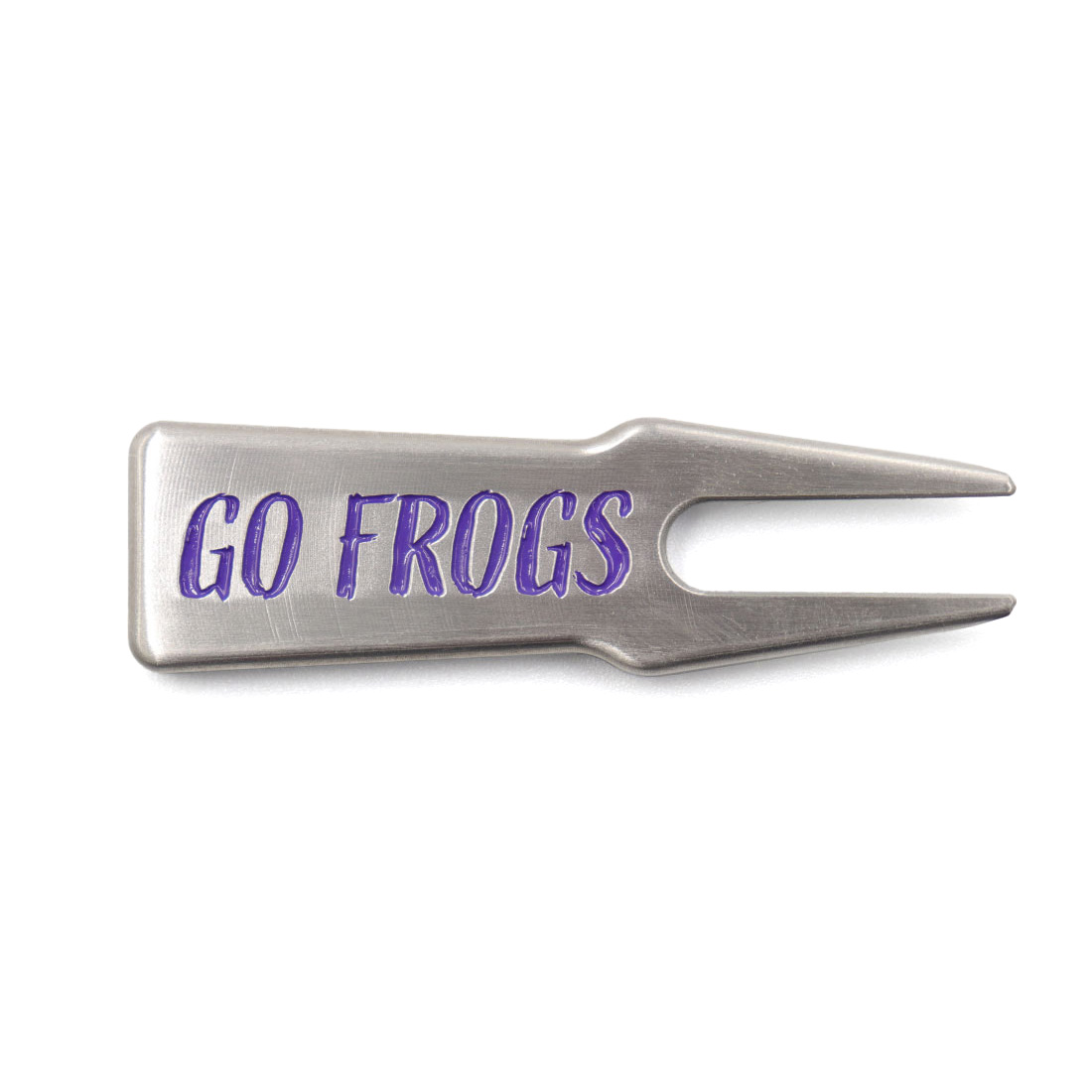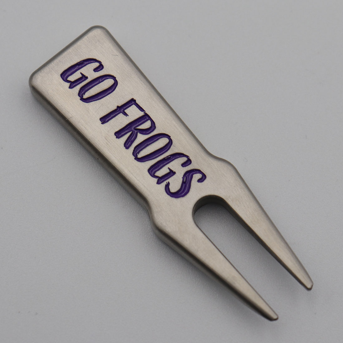 グリーンフォーク レーザー刻印によるグリーンフォークです。 Go Frogsはテキサス・クリスチャン大学フットボールチームの応援スローガンです。 素材にはパターと同じ303ステンレススチールを使用。 すべて手作りのグリーンフォークです! |